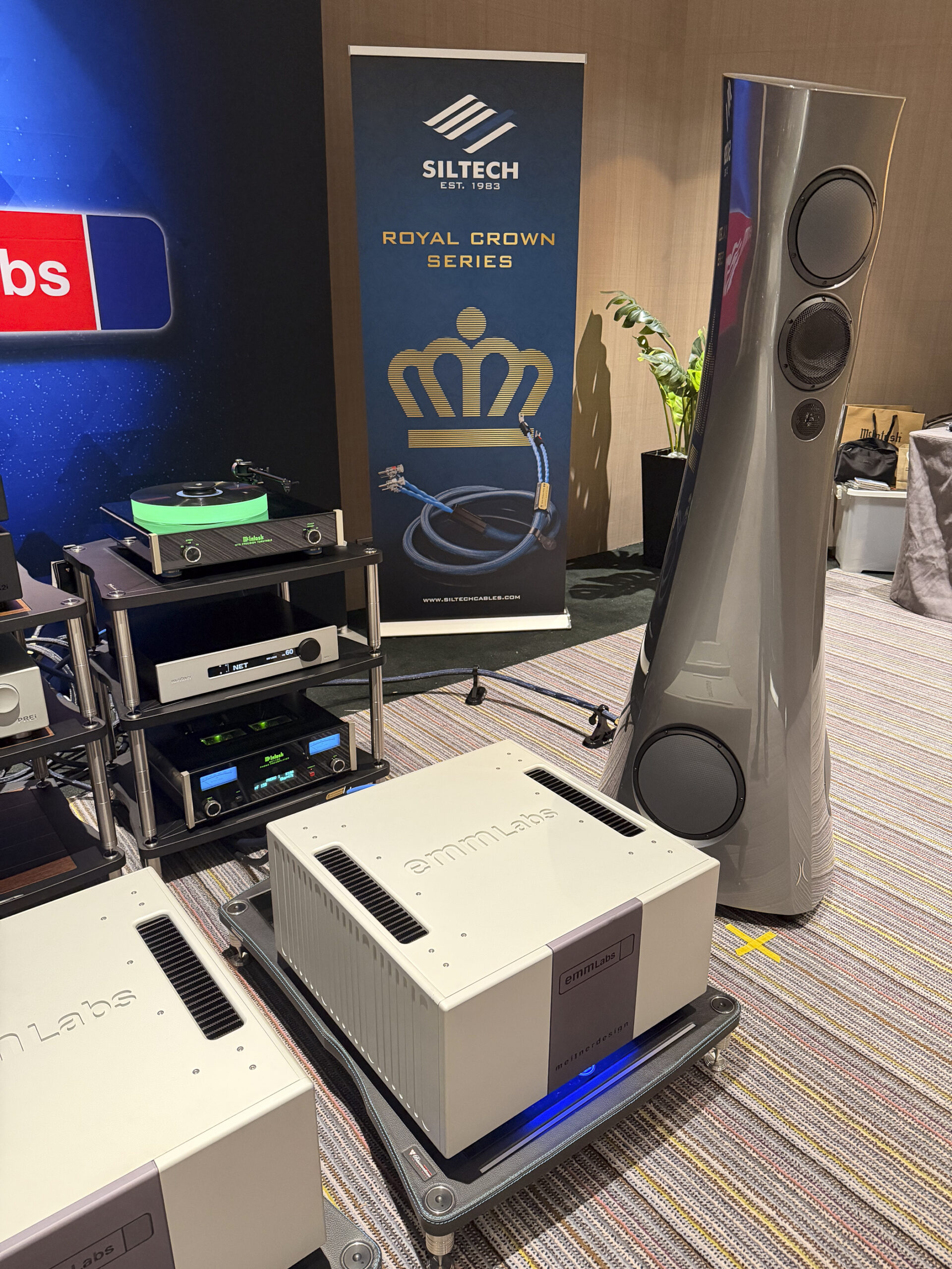 At the centre of the system were the Estelon Forza speakers, delivering scale, depth, and micro-detail with effortless control. Amplification was handled by the EMM Labs MTRX and EMM Labs PREi, providing both authority and transparency. Digital playback came from the EMM Labs DA2i and EMM Labs TXi Transport, while analogue reproduction was delivered by the Clearaudio Innovation, paired with the Ortofon AS-309R and Ortofon SPU A95.